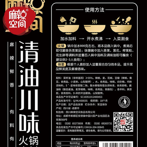 麻辣空间 川味麻辣清油火锅底料