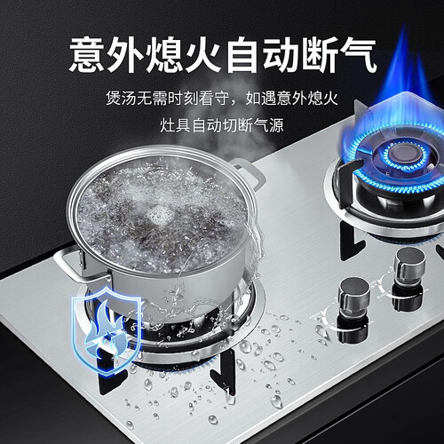 4.2KW聚能猛火,火力强劲,受热均匀,爆炒脆嫩出锅快,省时又省心。又采用热电偶熄火保护装置,遇意外自动熄火并切断气源。