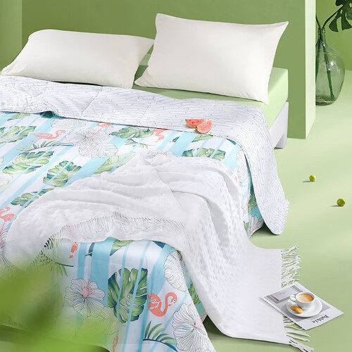 采用精美印花设计,能增添空调被的美感,使用更舒心。七孔纤维,能透气吸湿,可以避免睡眠时闷热出汗产生黏腻感。