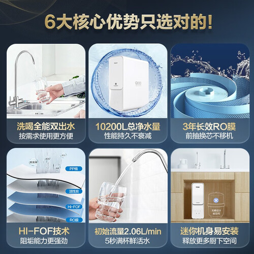 支持全能洗喝双出水,随需切换洗菜用水和饮用水两种模式,使用更便捷。采用侧抽换芯设计,轻松更换滤芯,无需反复拆装。