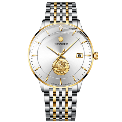 12时位采用天然钻石镶嵌,低奢显档次,不经意间彰显高端品质。采用全自动机械机芯制作,增加走时精准度,将时间掌握在手。