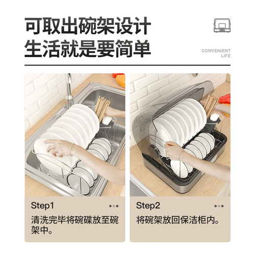 加宽出风口设计,带来出色的烘干效果,给您提供干爽的餐具。小巧的机身,支持台面放置,不占用过多空间。免沥干放置,使用省心。
