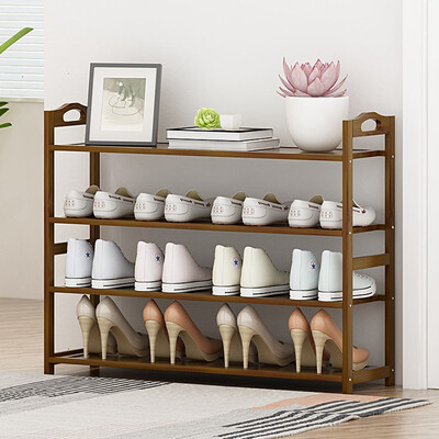 这款鞋架两边圆润把手设计,搬运更轻松,竹制材料打造,具有防潮防尘的特点。
