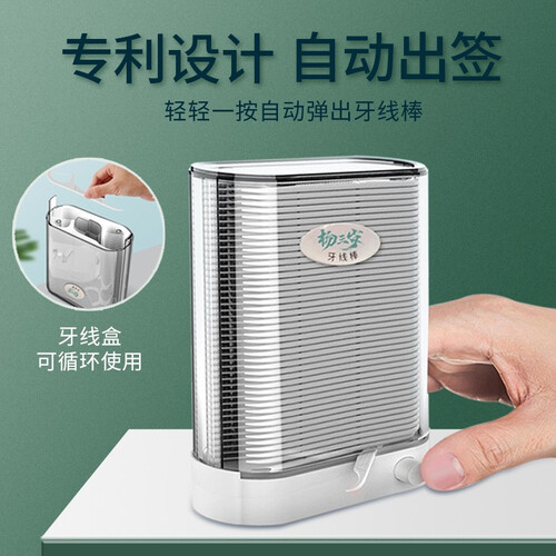 分层收纳+封闭设计,不易污染,保证牙线棒的干净卫生。自动出签的设计,使用方便,轻轻一按即可自动弹出牙线棒。