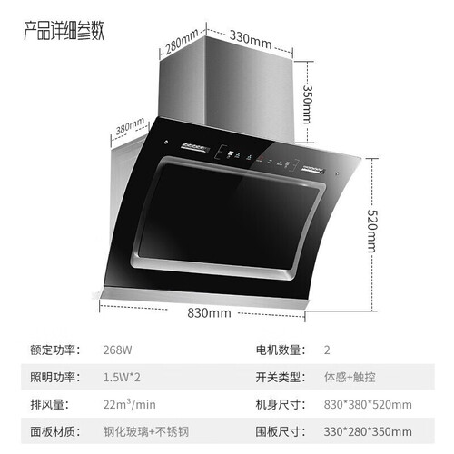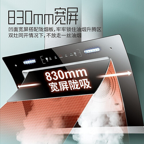 830mm宽屏拢烟,减少烟味飘散,让厨房常年保持清新。一键清洗功能,告别清洗烦恼,油烟机内部不易滋生细菌。