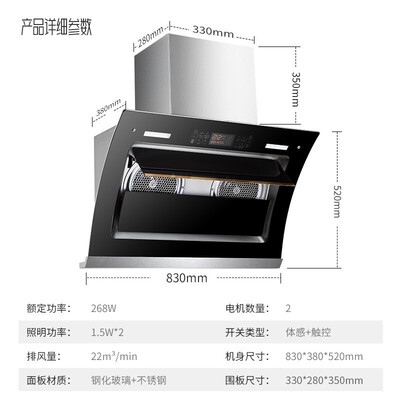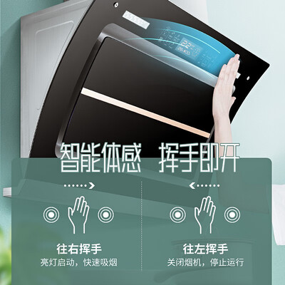 自动变频增压设计,吸力强劲,排烟顺畅,不出现倒灌。采用红外线体感操控,挥挥手就可以控制,无需触碰更洁净。
