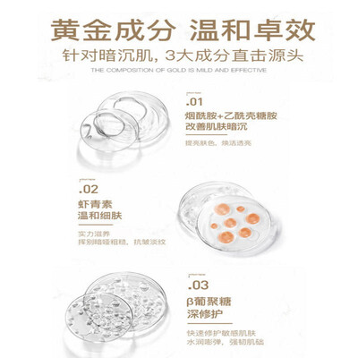 烟酰胺+虾青素的CP组合,层层焕亮肌肤,Get粉嫩少女肌。搭配复合黄金配方,淡化黑色素,专门为家包熬夜人群设计。