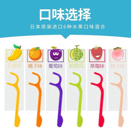 有六种水果口味,甜甜的,含有木糖醇,可以预防蛀牙呵护口腔健康。牙线的下柄,是半圆弧形,不会划伤手掌,很容易抓牢。