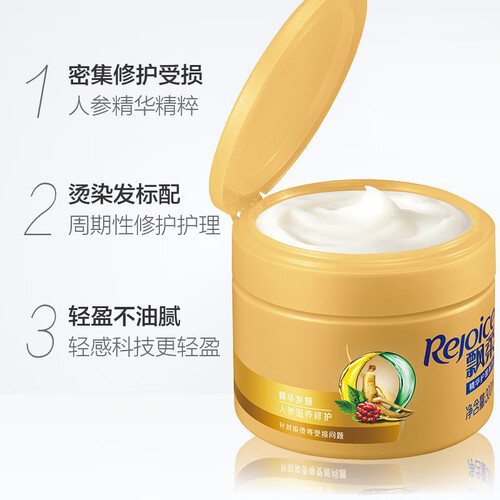添加人参精华精萃,多角度修护受损秀发,恢复秀发健康柔滑。采用轻感科技配方,清爽舒适,护发不黏腻,秀发更蓬松飘逸。
