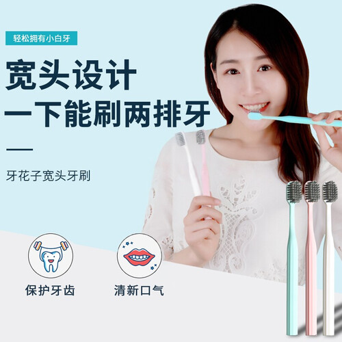 采用宽头设计,一次能刷两排牙齿,节省时间效果翻倍,早晨晚起也能从容不迫。泰国进口刷毛,软硬适中,强力清洁的同时呵护牙龈。