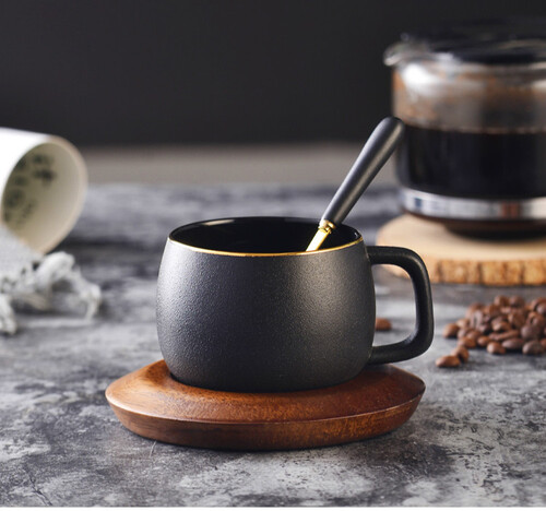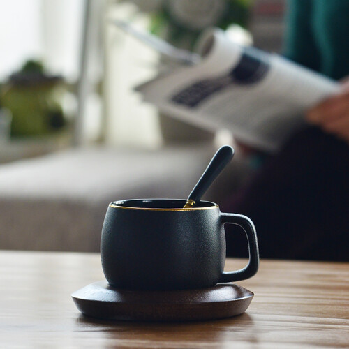 咖啡杯的杯沿具有描金设计,金边采用高品质金水,人工描绘而成,整体显露出一种奢华大气之感,品质非凡。