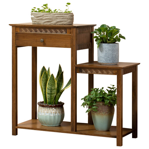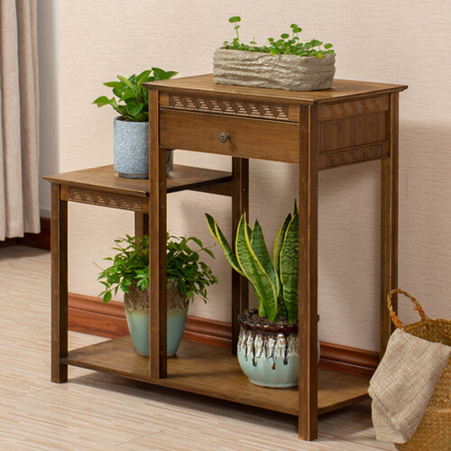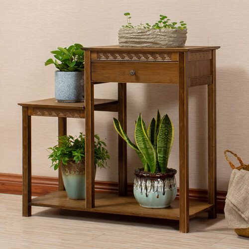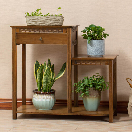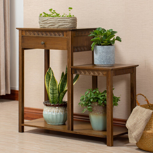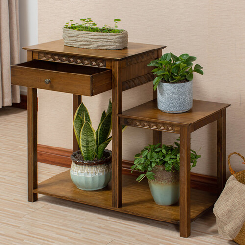 高低组合结构的花架,错落有致更好看,方便花盆造型。环保漆料上色的表层,质地光滑,持久耐磨,不易掉漆。