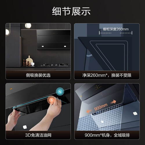 搭载智能瞬吸功能,可快速除去爆炒油烟,告别呛鼻困扰。宽域隔烟屏设计,锁住油烟避免倒灌。弱挡除味功能,有效除去厨房异味。