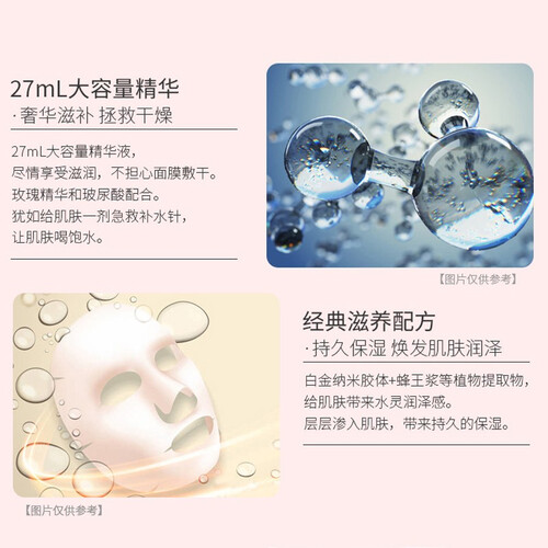27ml大容量精华,从肌底开始滋养和修护,给肌肤注入满满的水分。采用三层膜布,牢牢锁住精华,渗透肌底进行滋润。