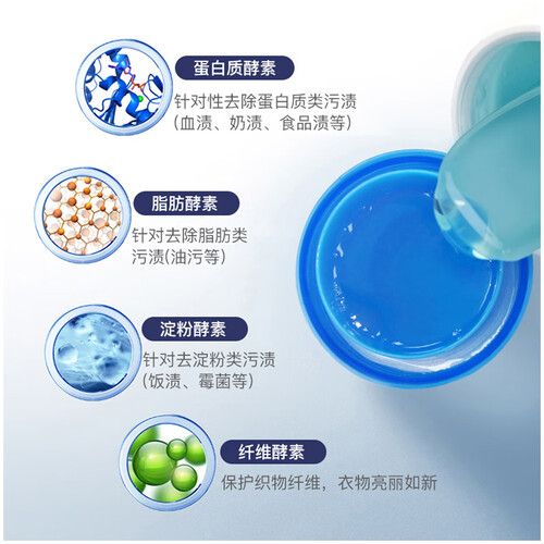 添加了丰富的衣物柔顺剂,衣物清洗后,使衣物更加蓬松柔和。添加了小苏打去污成分,温和配方不伤衣,使用衣物洁净更健康。