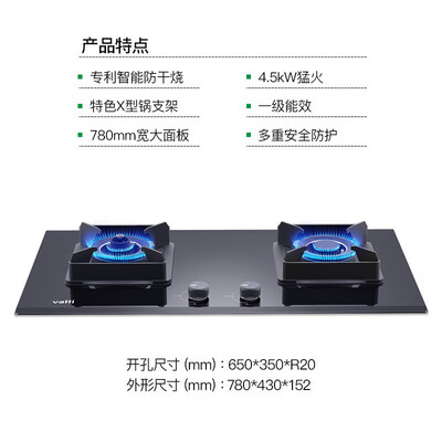 搭载了智能防干烧装置,感温探头实时检测,当锅底温度过高或者锅具离开燃气灶2分钟左右,灶具会自动切断燃气,并发出报警。