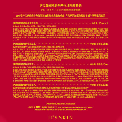 配有按摩滚头,360度全眼周按摩,提亮的效果更好。添加6年生高丽红生参+科学配比的蜗牛原液,让肌肤Q弹。
