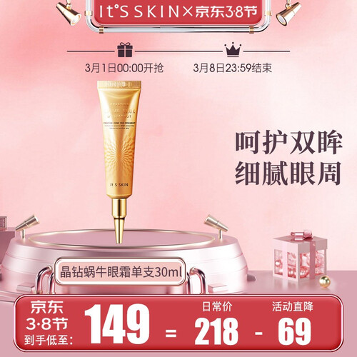 精选植物精华,采用了6年生红参,质地纯净,可缓解眼部浮肿,让肌肤更Q弹。添加了蜗牛原液,经过科学配比,可焕活眼部肌肤。