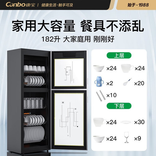 五层加大碗架,层架设计更合理,匹配百变餐具,还有筷子层架,好用方便。上下独立消毒,臭氧可破坏细菌细胞结构,更彻底。