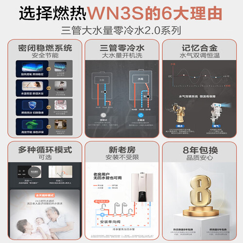 采用零冷水技术,即开即热无需漫长等待,洗澡更加轻松舒适。搭载三管增压技术,高楼层也能使用,享受澎湃热水澡。