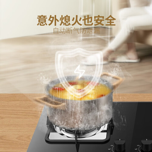设有多重安全保障,锅具放置不再侧滑,双层钢化防爆。内置玻璃钢面板,耐磨也不易花,有脏污也不怕轻轻一擦就干净。