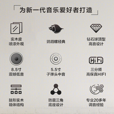 手工打磨的箱体搭配多层烤漆制作,手感圆滑,尽显高贵典雅。原木箱体降低了声波衍射和谐振,结合现代电声技术,音色更纯净。
