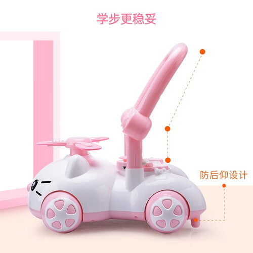 符合人体工学结构的把手设计,宝宝握持更舒适,推行更方便。采用四轮架构处理,稳定性更好,不易侧翻,推行更安全。