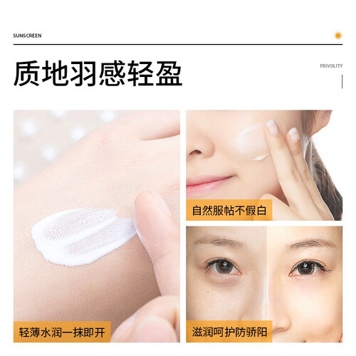 三效合一美白合一,水润防晒不闷痘。突破想象的水感透气,如水般清爽,轻轻一抹无需卸妆。
