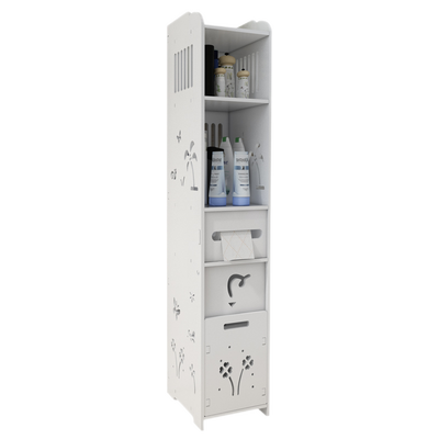 使用木塑板材质防潮防水,可直接水洗不易发霉腐烂。隐藏式纸巾收纳不易淋湿,可放置卫生纸或不宜沾水的小物件。