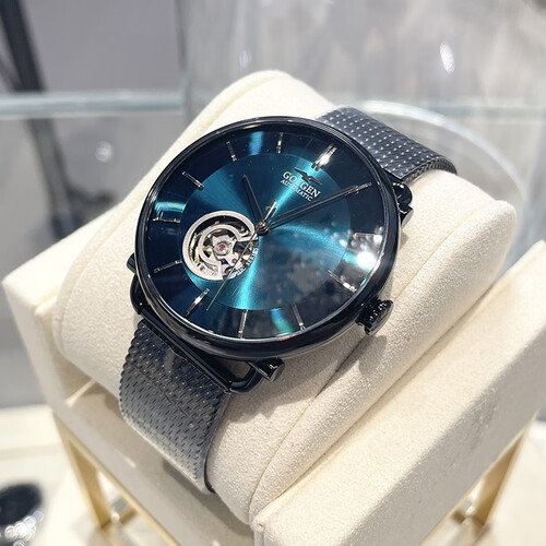 表盘采用孔雀蓝颜色设计,时尚前卫,展现国潮魅力。采用合成蓝宝石玻璃表镜,硬度更高,防刮耐磨,结实耐用。