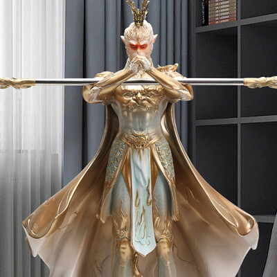 惟妙惟肖的齐天大圣造型,外形灵动威武,桌面摆放十分动感炫酷。仿古铜色制作,色泽古朴大气,艺术风格十足。