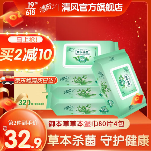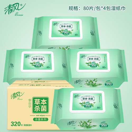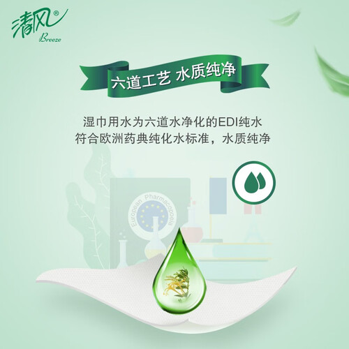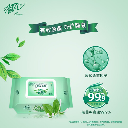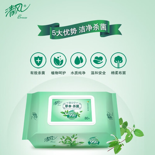 湿巾大小适中,水分非常充足,清洁性强;搭配草本配方,使用后清爽洁净,并散发自然清香。