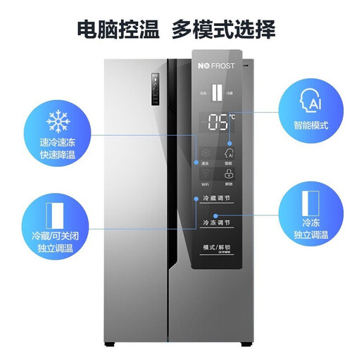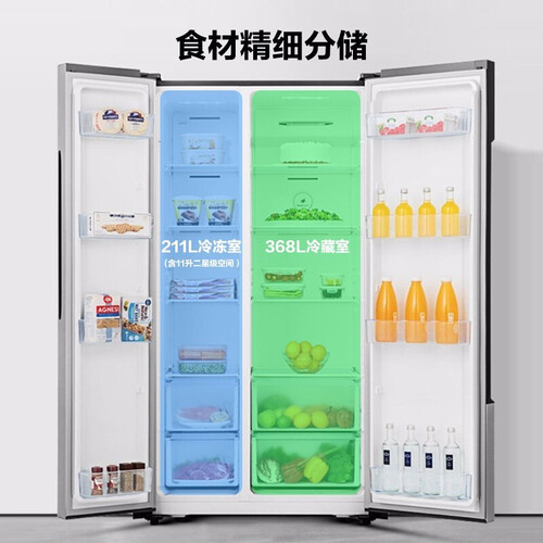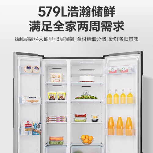 579L浩瀚储鲜,可以满足全家两周需求,不用反复的出去买菜。智能感温装置,感温效果好,拒绝过冷或高温让食材无法使用。