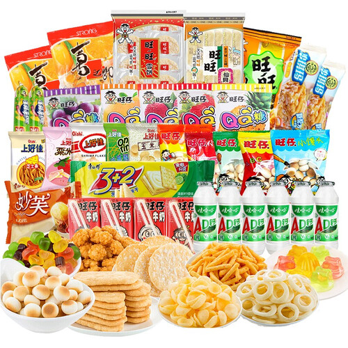 多种零食结合,带来满满美味。多种零食,满足你不同的需求,丰富你的口感。搭配喜之郎果冻,味美多汁。入口脆甜鲜香,十分诱人。