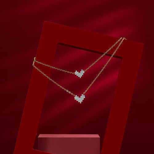 精巧爱心造型设计,结合手工满镶钻石工艺,璀璨闪耀,散发绚丽光芒。搭配精美的礼盒包装,喜庆吸睛,送礼佳选。