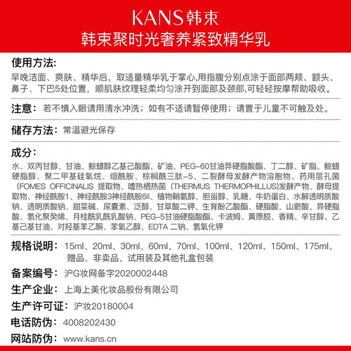 紧致提拉肌肤,逐渐缓解肌肤松弛和下垂情况,令面部更紧致,同时淡化细纹修护面部,让肌肤更弹滑。
