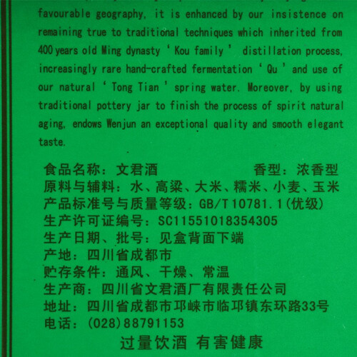 文君 高度浓香型白酒