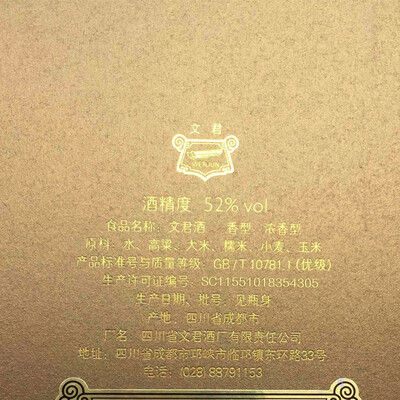 酒质清澈晶莹,打开瓶盖后,清新淡雅独特酒香让人心旷神怡;入口顺滑,浓香四溢,饮后甘润舒适,唇齿留香。