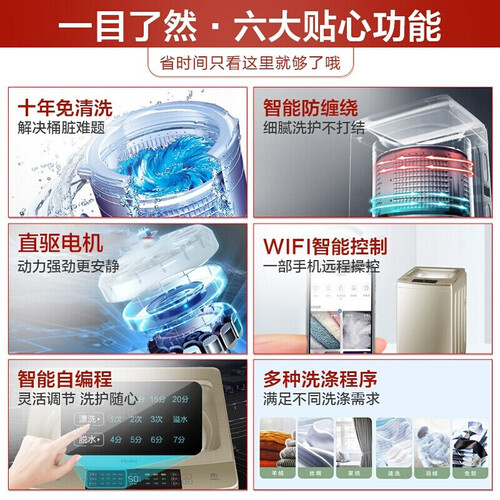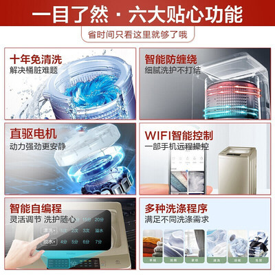 搭载免清洗系统,解决脏桶问题,开启健康洗护新时代。这款洗衣机可连接手机软件,在外也能进行操控,使用更便捷。