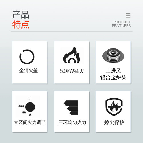 全铜火盖,质地更加坚固,耐高温防腐蚀,长久使用不易变形。安全童锁旋钮,防止孩子开启,为家人安全保驾护航。