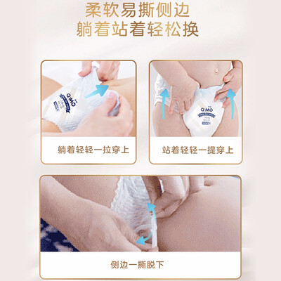 内置3条导流通道,可更好地吸收尿液,从而保持干爽状态。轻薄芯体,使穿着体验更轻盈,宝宝活动更自在。