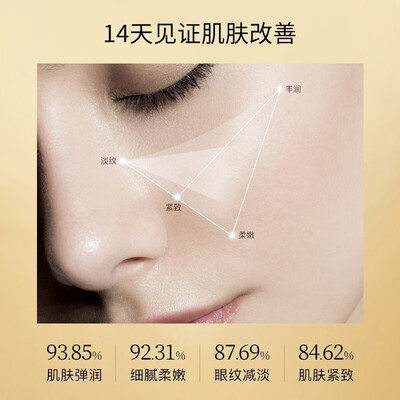 含有胶原肽成分,能紧锁脸部胶原以及改善细纹,有效提升面部弹性。还带有烟酰胺成分,有效匀净肤色,使肌肤细腻柔滑。