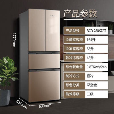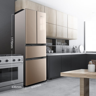 这款冰箱采用大容量设计,可以独立收纳多种食材,整洁有序,避免杂乱。时尚的金色面板,尽显简约优雅的韵味。