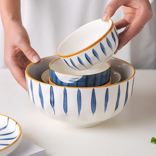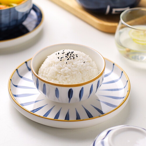 川岛屋日式蓝线带盖泡面碗