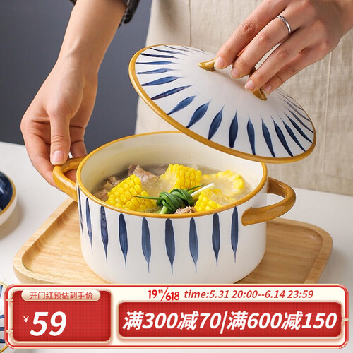 此款采用日式复古青花纹理设计,典雅美观,韵味十足,摆拍更好看;两端使用双耳把手设计,端拿时更不易烫手。