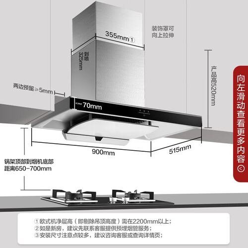 采用立体环吸云板设计,提升负压面积,实现超大拢烟,油烟无处逃逸。隐匿式油网的设计,有效防止油污滴落,可拆洗更方便。