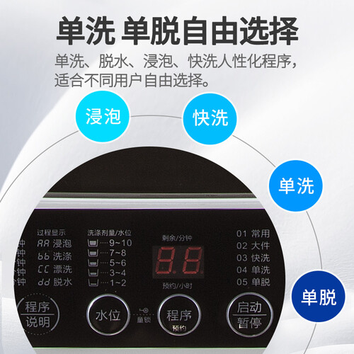 10kg大容量设计,衣物有充分舒展的空间。24h预约洗涤,适应当下快节奏生活。NF全模糊控制,智能匹配简化操作。
