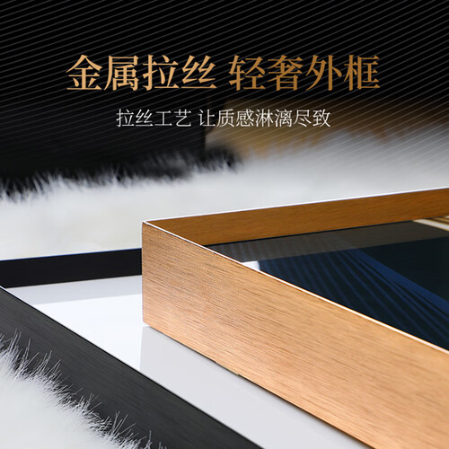 此款一体封釉晶瓷画,画面清晰自然,墙面装饰美观易打理,历久不褪色。金属拉丝外框,触感细腻光滑,质感十足。
