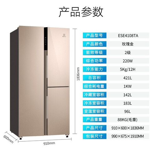 采用183L冷冻室、142L冷藏室和96L变温室,满足不同食材储藏保鲜需求。配备LED触控显示屏,操作更便捷。