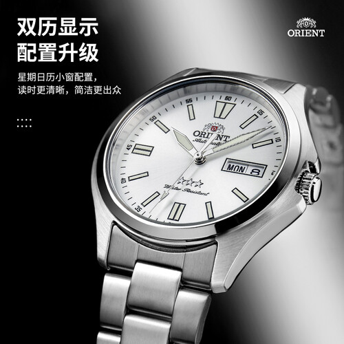 大面积夜光显示设计,有利于夜间看时,确保不错过每一个重要时刻;配置星期日历小窗口,读时清晰,品质更出众。